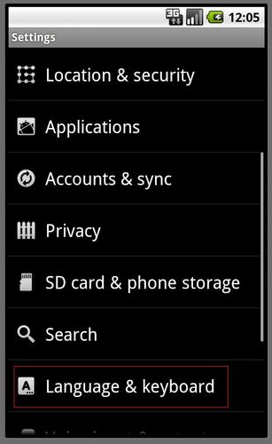 打開主菜單,進入【Settings(設置)】菜單,像手機一樣操作,網上拖動屏幕,選擇【Language & Keyboard(語言和鍵盤)】菜單:
