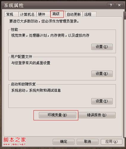 在【高級】選項卡中,單擊【環境變量】按鈕,即打卡了環境變量的對話框。這里要添加三處的環境變量!