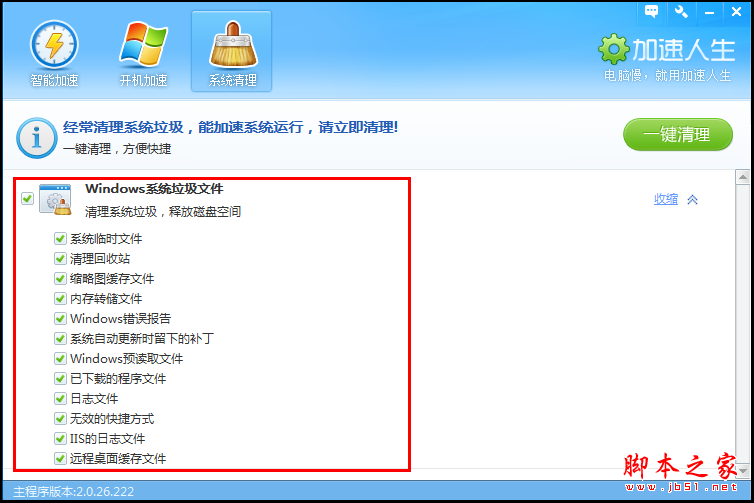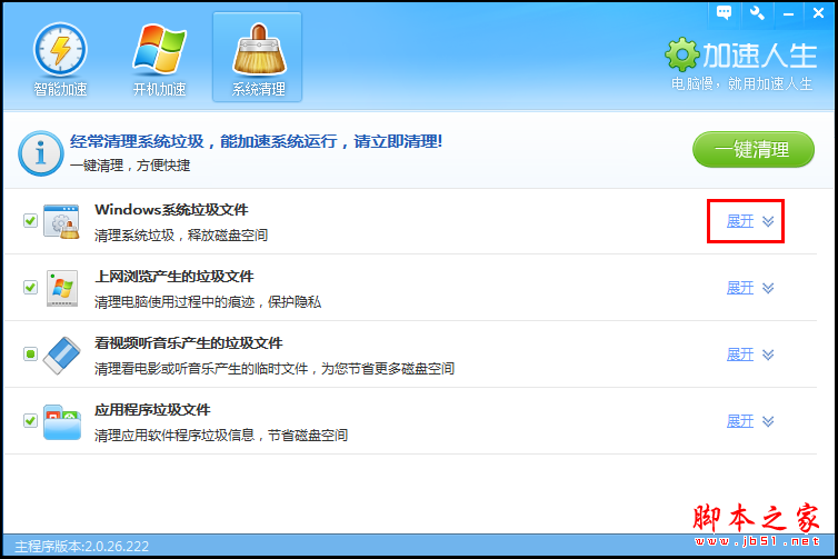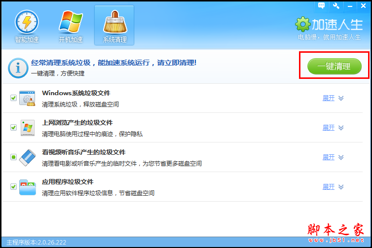 房間定期清理才會(huì)潔凈如新,系統(tǒng)也一樣,定期清理才會(huì)使用順暢。今天你的電腦還沒(méi)有“大掃除”嗎?趕緊用加速人生來(lái)掃掃垃圾加快速度吧!