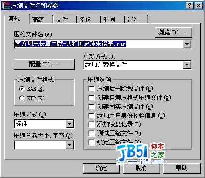 圖4 右鍵菜單 想壓縮文件的時(shí)候,在文件上點(diǎn)右鍵并選擇“添加到檔案文件”,這樣就會(huì)出現(xiàn)圖5,在圖5 的最上部您可以看見6個(gè)選項(xiàng),這里是選擇“常規(guī)“時(shí)出現(xiàn)的界面。