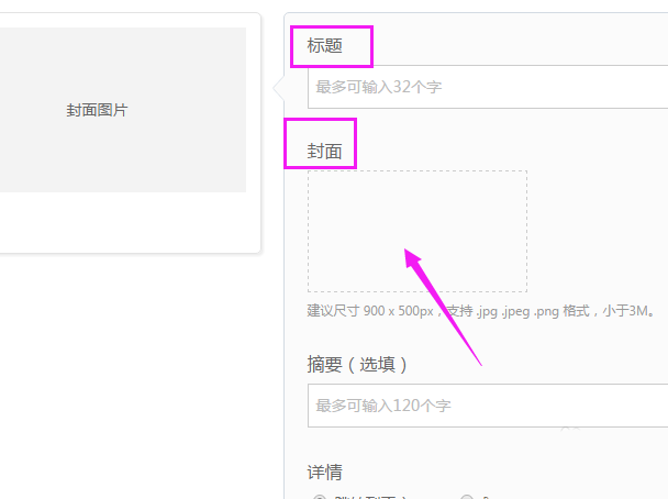 5、輸入素材標題,上傳圖片(3M以內),輸入正文內容。