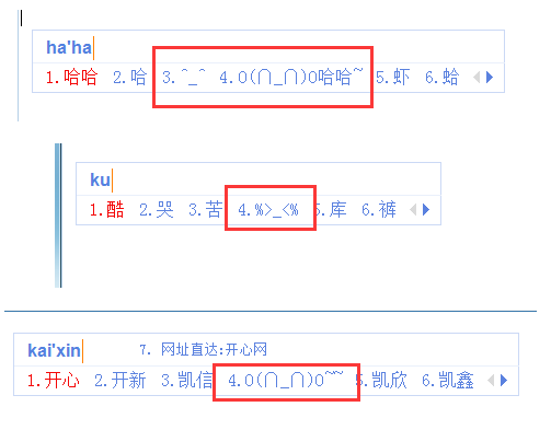 4、另外我們還可以在輸入框中輸入“haha”、“ku”、“kaixin”等字眼的詞語,也能打出一些表情符號。
