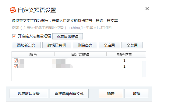 2、在搜狗輸入法屬性設置中找到“高級”分類,在高級分類里有一個“自定義短語”的功能,打開它,