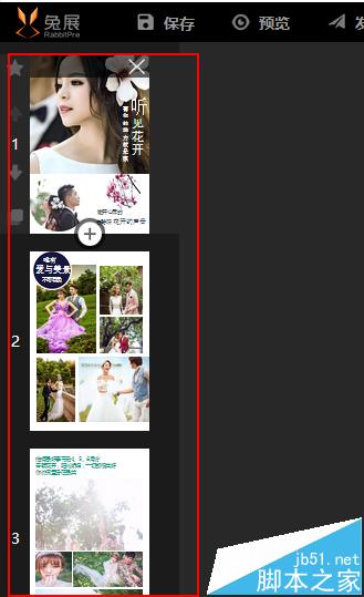 2。進(jìn)入制作編輯里面,左邊紅色框框里面是你的作品頁數(shù),可以自由刪減,左上角是保存和發(fā)布,然后頁面右邊是編輯器的各種功能和工具,可以根據(jù)你的喜好任意做修改哦。