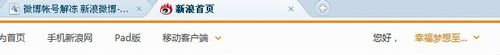 4、到第二個網頁,新浪首頁,登陸一個自己另外一個賬號,或者注冊,或者qq登陸,第二個賬號叫【幸福夢想至尊】也就是新賬號,也是第二個賬號,如下圖。