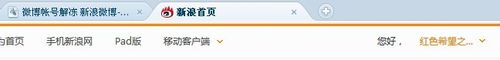 2、第一個網頁不用管了,加一個新網頁,也就是第二個網頁,這樣就有兩個網頁了,然后到第二個網頁,進入新浪首頁,退出那個被凍結的新浪賬號,也就是退出老賬號,也是第一個賬號,在新浪首頁點擊自己的網名,就會出現【我的收藏】和【退出】兩個鏈接,點擊【退出】然后就沒有新浪微博了,顯示的是登陸,如下圖。