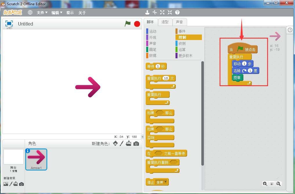 以上就是scratch記錄箭頭旋轉的軌跡的教程,希望大家喜歡,請繼續(xù)關注武林網。