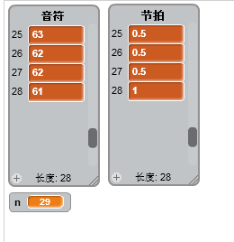5、分別將音符和節(jié)拍導(dǎo)入對(duì)應(yīng)的鏈表中。
