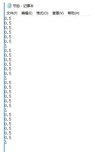 3、新建一個(gè)記事本,將音符和節(jié)拍分別按下面形式保存。