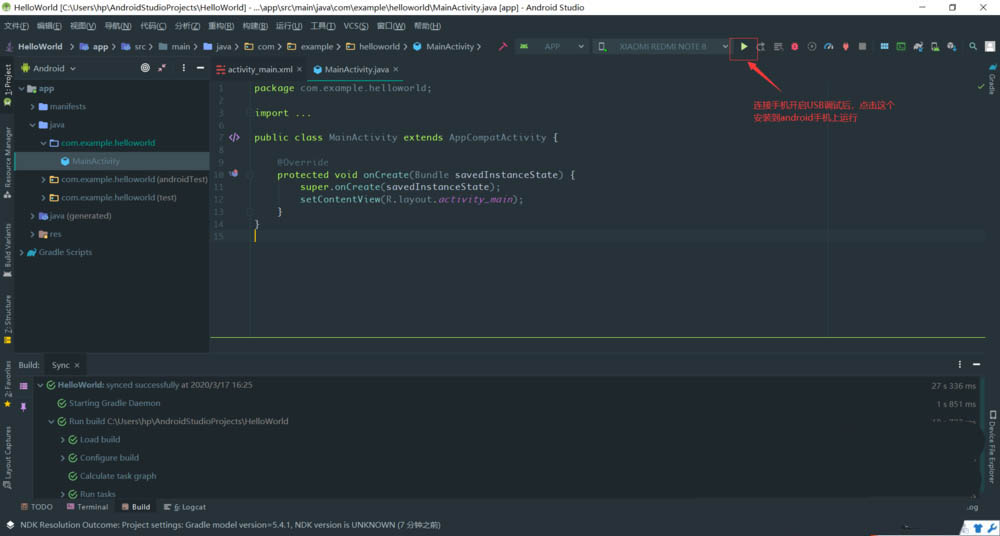 7、連接手機,打開USB調(diào)試,點擊“Run”圖標,會自動安裝。