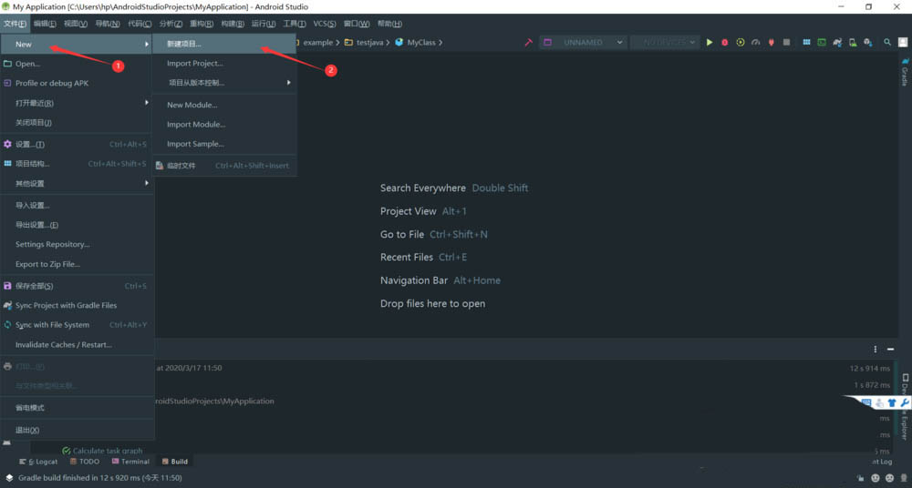 2、點擊頂部菜單工具欄的“文件”-“New”-“新建項目”。