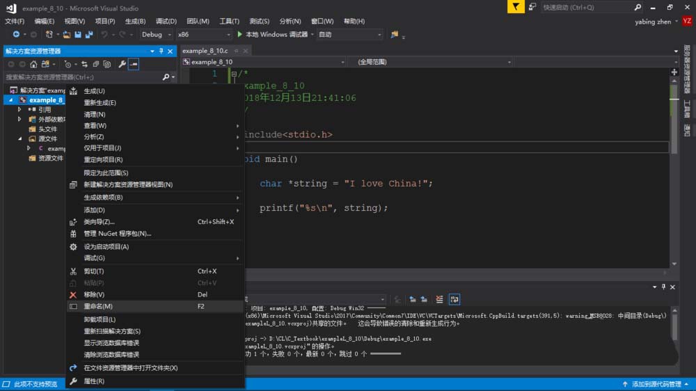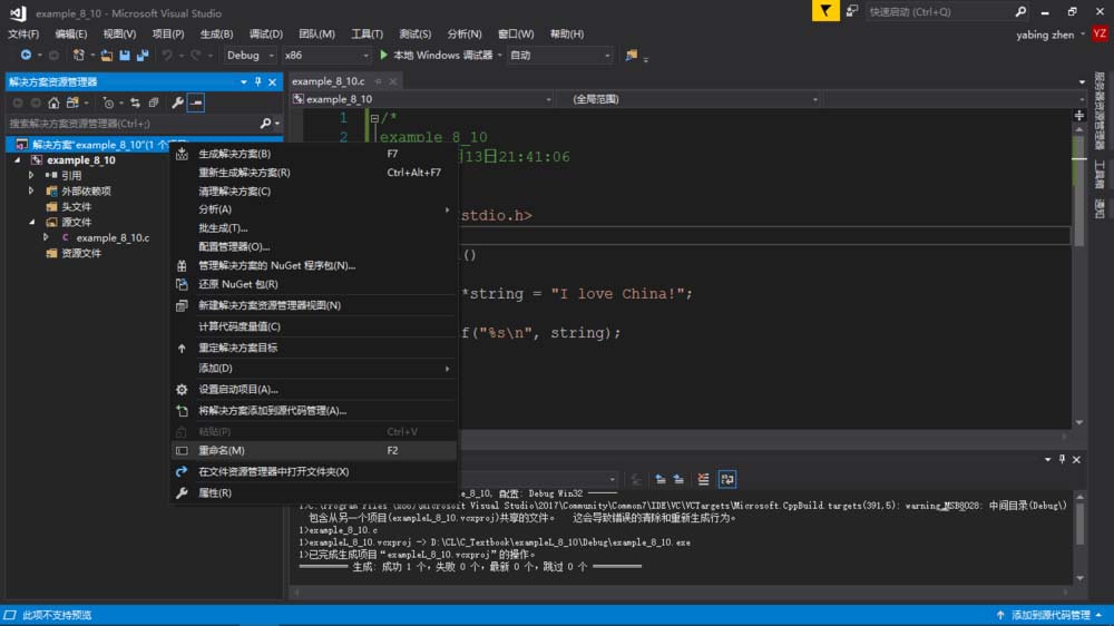 解決方案重命名:鼠標右擊解決方案,選擇"重命名"。