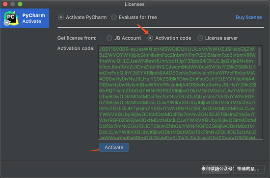 3)如果服務器激活方式無法激活,還可以選擇Activation code方式激活,復制下面激活碼即可
