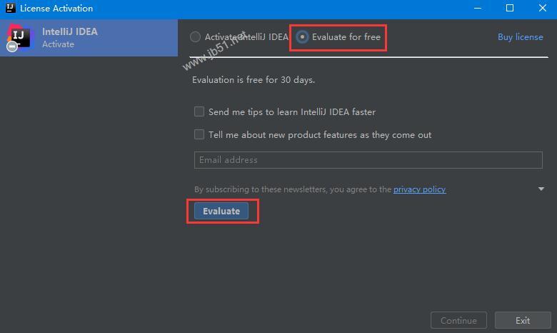 7、運行軟件,進入ide主界面,提示需要注冊,這時候只需要勾選試用(Evaluate for free)選項,點擊Evaluate進入IDE