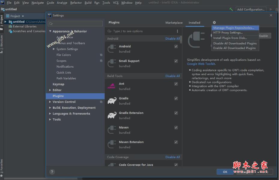 關于漢化方面,據說目前官方已經自帶中文,默認情況下中文是不開啟的,根據 JetBrains 官方的說明,所有的 i18n 包都是以插件的形式集成到 IntelliJ IDEA中的。需要你自己去集成漢化插件。關于集成漢化插件的步驟是 Ctrl+ALT+S 打開 Settings -> Plugins