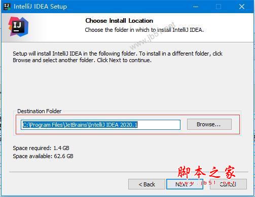 3、選擇安裝路徑,默認C:/Program Files/JetBrains/IntelliJ IDEA 2020.1