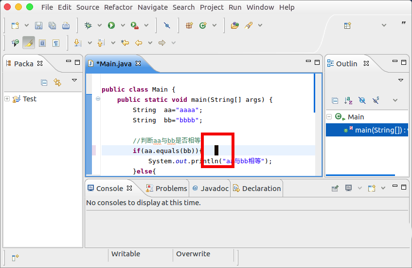 打開(kāi)自己的eclipse創(chuàng)建一個(gè)項(xiàng)目,敲了幾行代碼發(fā)現(xiàn)感覺(jué)不對(duì),光標(biāo)變成方塊了每次敲代碼會(huì)覆蓋掉后面的,下面我們就來(lái)看看詳細(xì)的解決辦法