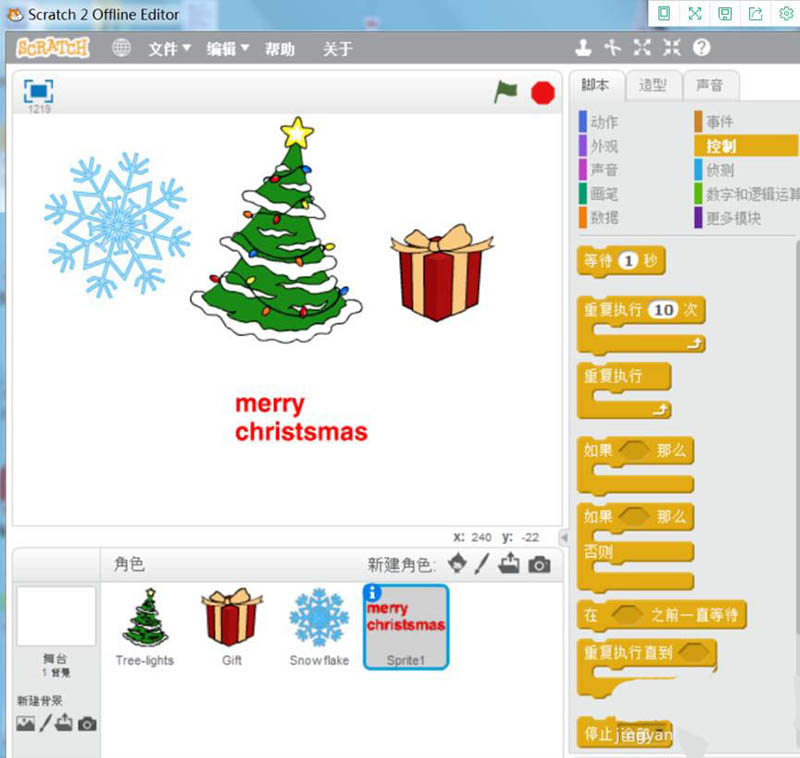 用scratch可制作圣誕快樂的動(dòng)畫,該怎么制作制作這個(gè)圣誕快樂的背景圖和動(dòng)畫效果呢?下面我們就來看看詳細(xì)的教程。