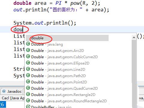 1、打開Eclipse,編寫一些代碼,比如我們可以輸入dou后,按下Alt+/,即可快速調出我們可能想要的變量類型,如下圖所示: