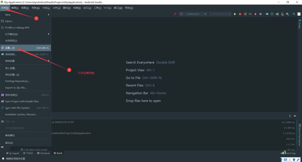 2、打開左上角“文件”-“設(shè)置”。