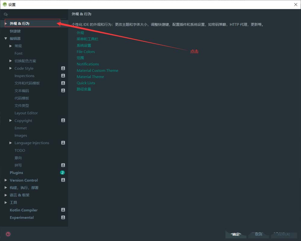 3、點擊“外觀&行為”,進入到外觀界面。