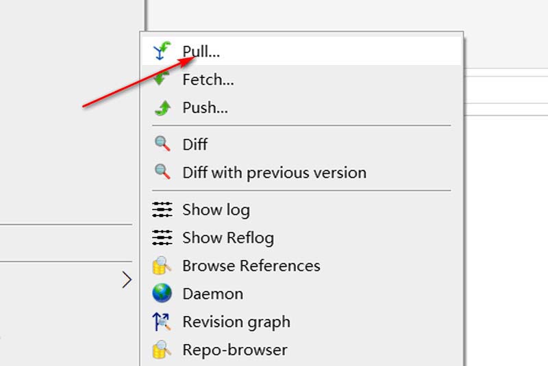 2、接著,我們鼠標右擊項目,選擇【pull】進行拉取。
