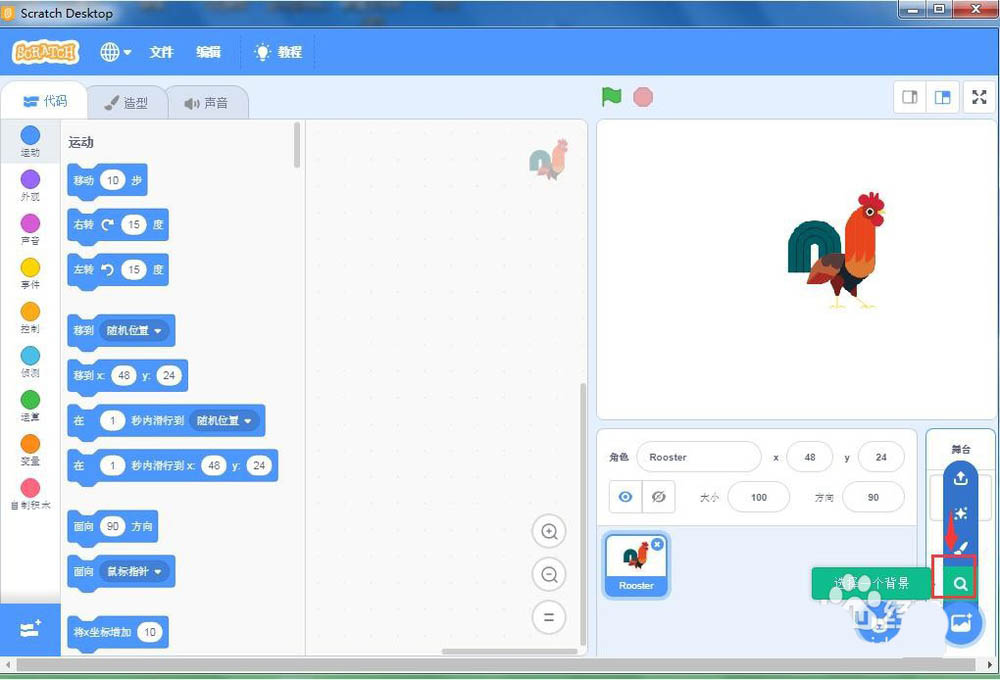 在scratch3.0中,我們可以根據(jù)程序設(shè)計的需要創(chuàng)建各種不同場景,需要一個森林中的大公雞背景圖,該怎么創(chuàng)建呢?下面我們就來看看詳細(xì)的教程。