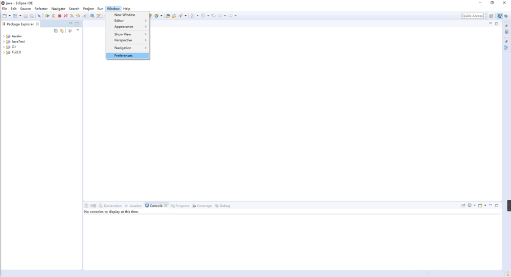 1、打開Eclipse,選擇頂部菜單欄中的Window——Preference