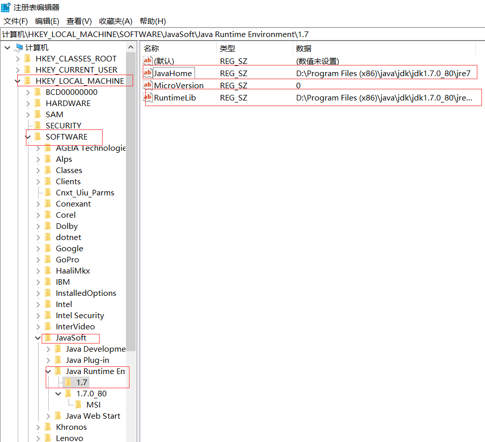 之后按下述的注冊表文件查找 [HKEY_LOCAL_MACHINE/SOFTWARE/JavaSoft/Java Runtime Environment/1.6/]