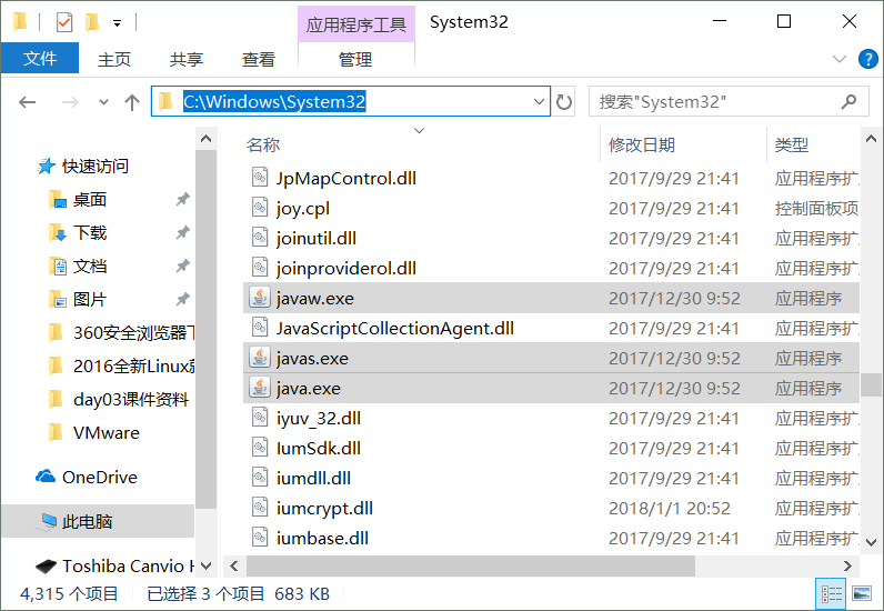 找到C:/Windows/System32目錄下javaw.ex、javas.exe、java.exe,刪除。