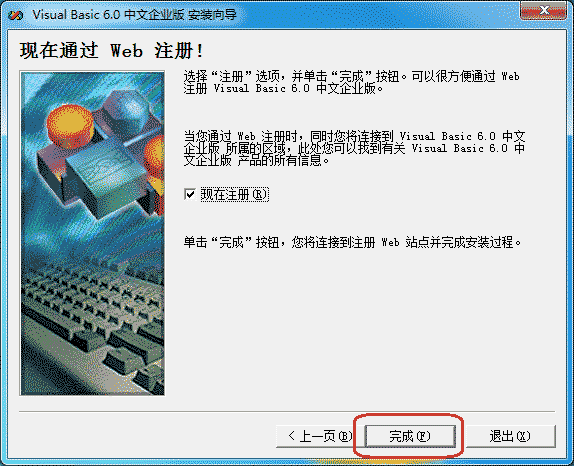 點擊“完成”,然后將打開的瀏覽器關閉,這樣VB6就安裝完成了: