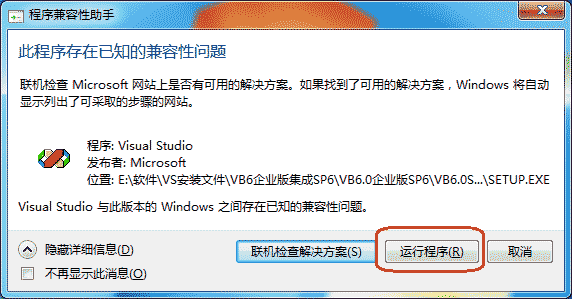 (注意)如果你使用的電腦是Windows7、Windows8(8.1)或者是Windows10操作系統,則可能會出現“程序兼容性”的提示,此時直接點擊“運行程序”即可,不需要進行其它的設置,如圖所示: