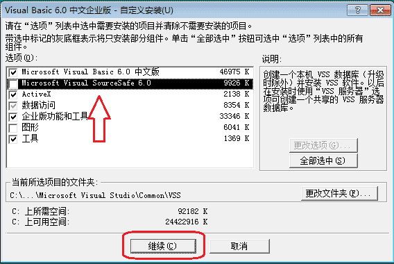 然后將第二項(也就是安裝VSS組件的那個項)鉤去掉,(重要)然后繼續往下看: