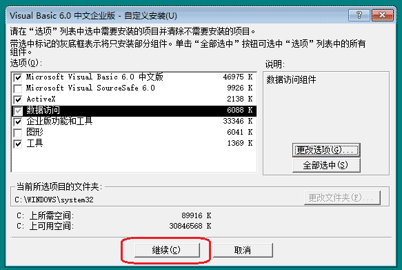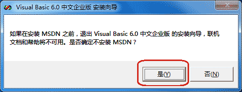 此時如果遇到一個“發現了舊版本的Visual SourceSafe”的提示,點擊“是”和“否”都可以(因為下面會取消這個組件的安裝,因為如果安裝了這個組件,則在此電腦的VB6.0上寫的代碼,拿到其它的電腦上以后就不能修改了):