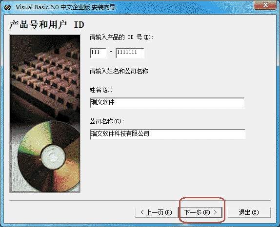 輸入ID號“111-1111111”,然后輸入姓名(可以隨意填寫),公司名稱處可以不填,然后點擊“下一步”:
