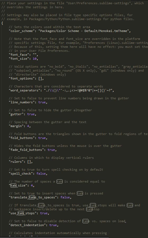 5、在preferences中的setting-default里面有好多有關(guān)sublime的設(shè)置。可以根據(jù)自己的習慣將里面的設(shè)置添加到setting-user里面。