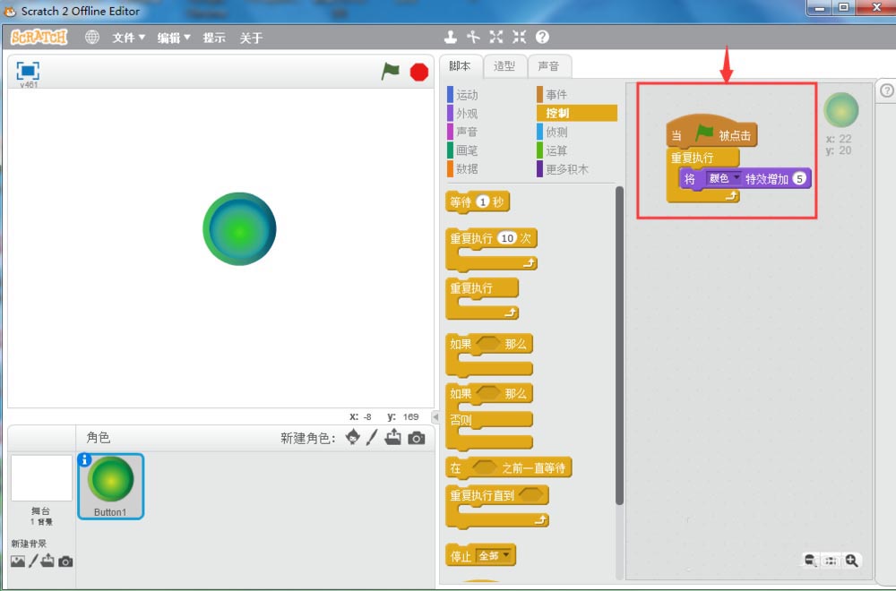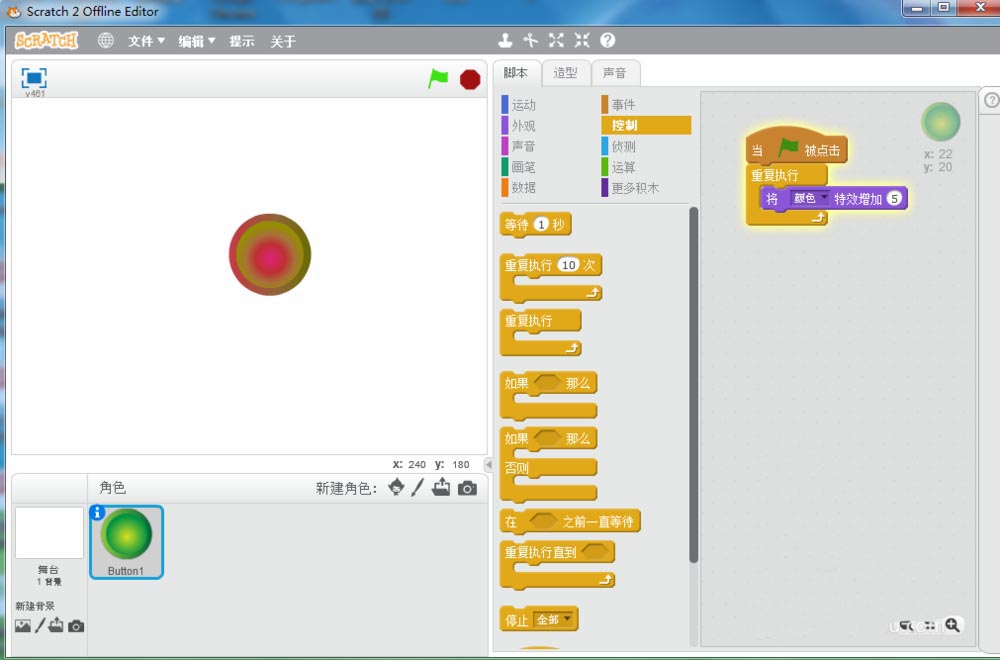scratch2.0中,我們可以通過給按鈕添加腳本,讓它不斷變色,制作成變色按鈕,該怎么制作這個效果呢?下面我們就來看看詳細的教程。