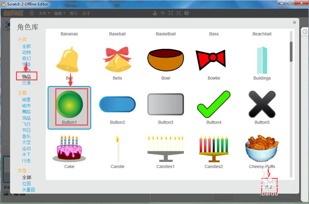 5、在scratch2.0中創(chuàng)建好一個按鈕角色;