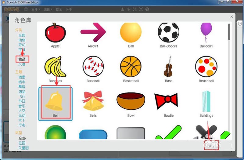 3、點擊物品,選擇鈴鐺,然后按確定;