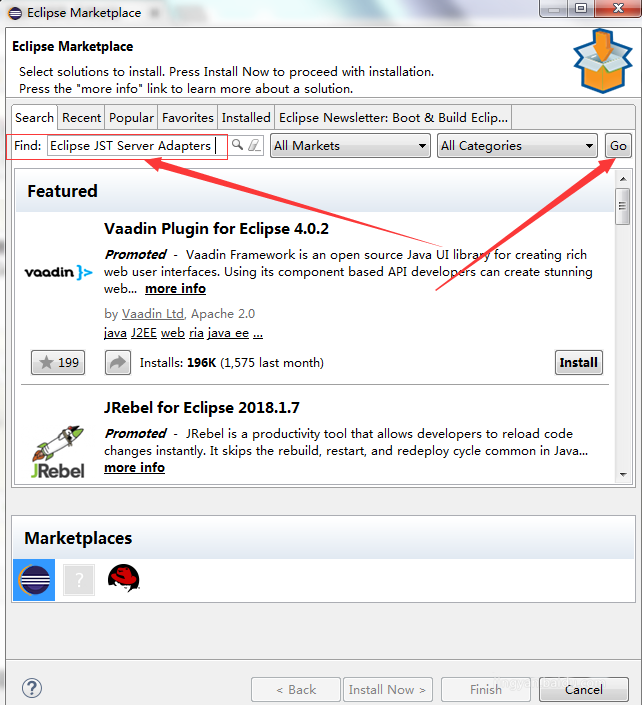 3、在搜索框內(nèi)輸入“Eclipse JST Server Adapters ”,然后點(diǎn)擊后面的Go按鈕進(jìn)行搜索。