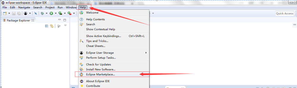 1、首先打開eclipse的菜單“Help”,找到下拉選項(xiàng)“eclipse marketplace”,如下圖所示。