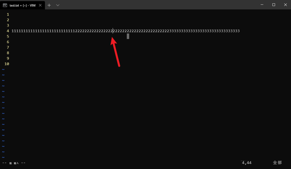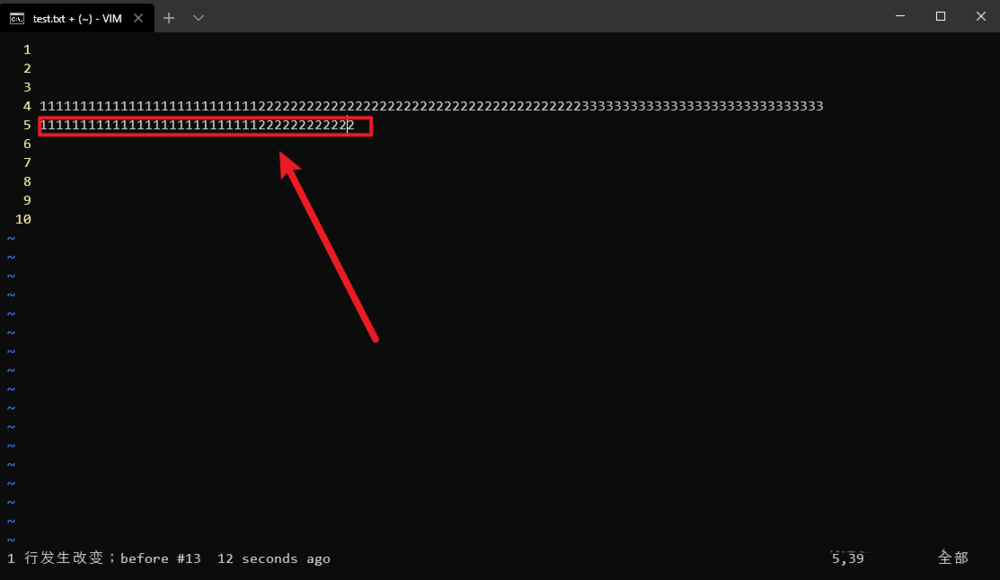 2、輸入vim test.txt打開實驗文件