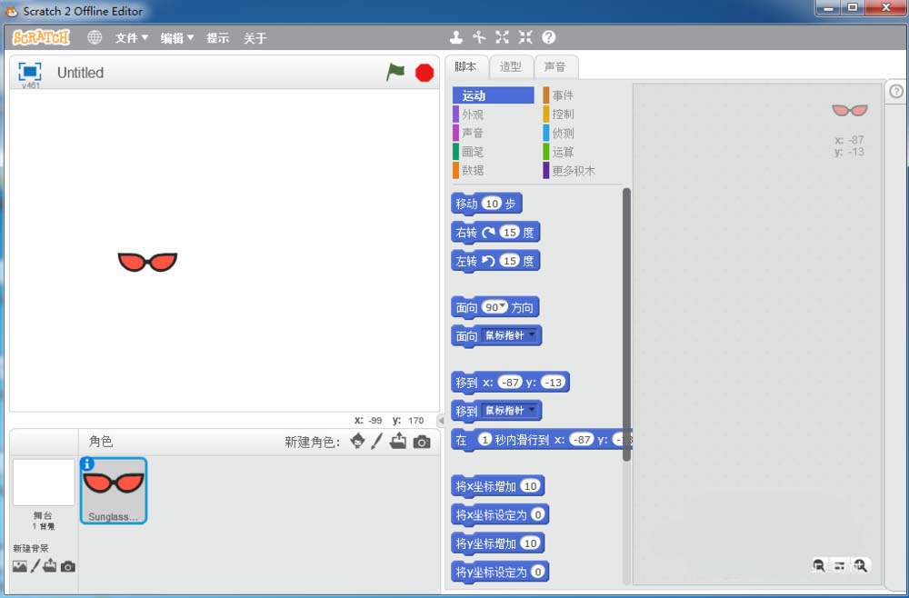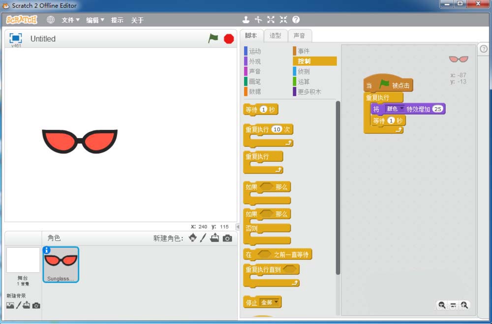 scratch中可以通過命令自作一些簡單的小動畫效果,該怎么制作一個眼鏡變色的效果呢?下面我們就來看看詳細的教程。