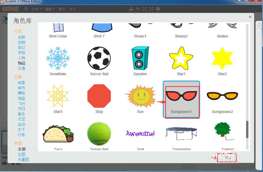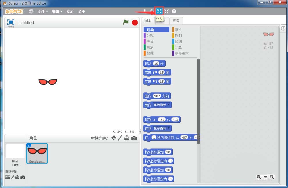6、在scratch2.0中插入了一個太陽眼鏡角色;