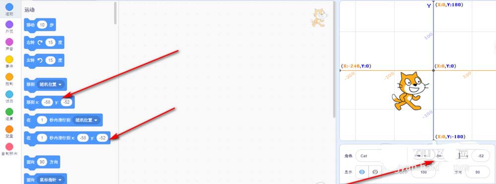 scratch舞臺實質上是一個坐標系,這個坐標系在角色的定位和移動上有很大的作用,下面我們就來看看scratch的坐標系的使用方法。