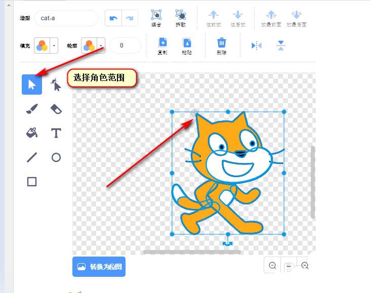 操作:查看圖片坐標參照點,使用“選擇”選中角色全部,然后移動角色,找到造型中心標志。