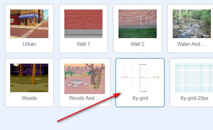 1、scratch軟件在背景庫中給大家提供了一個舞臺坐標系的背景圖片,所以大家可以先添加一下這個背景圖片,去查看一下舞臺坐標的一個規律。