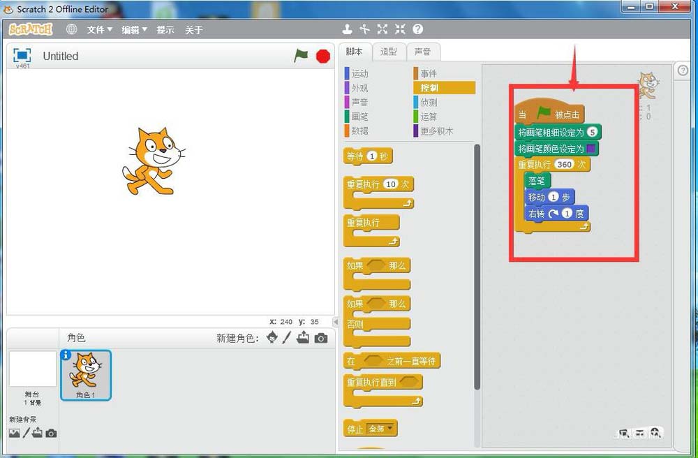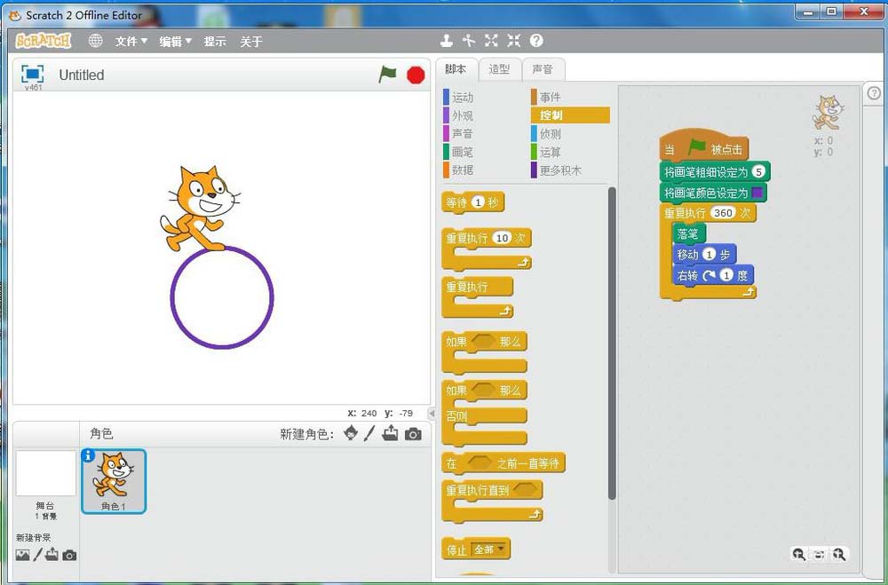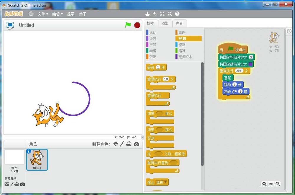 以上就是scratch小貓畫圓動畫效果的制作方法,希望大家喜歡,請繼續關注武林網。