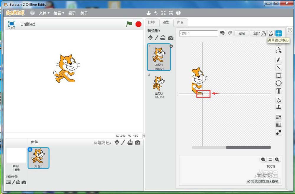 4、將造型中心設在小貓的前足端點上;