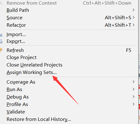 1、首先,選中已有的項(xiàng)目,右鍵,可以看到“Assign working Sets”選中